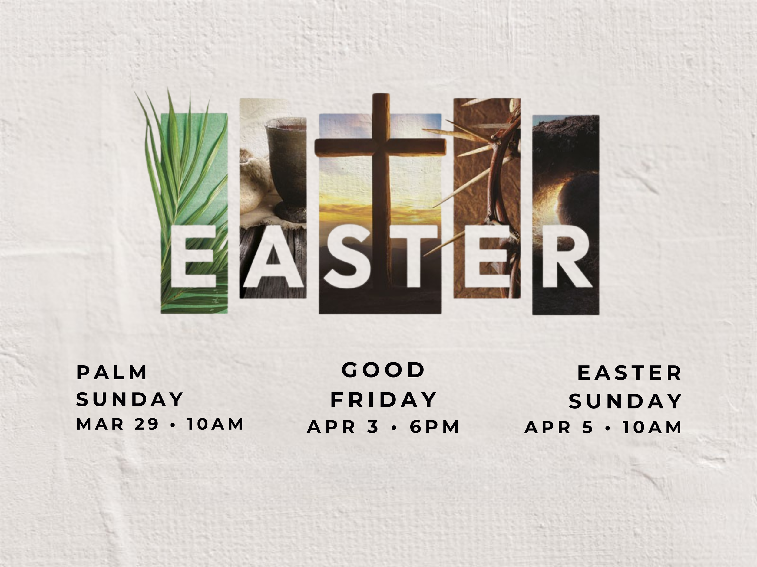 Each of our three services (Palm Sunday, Good Friday, & Easter Sunday) will all focus on the hope-filled message of the Gospel found in the Bible.