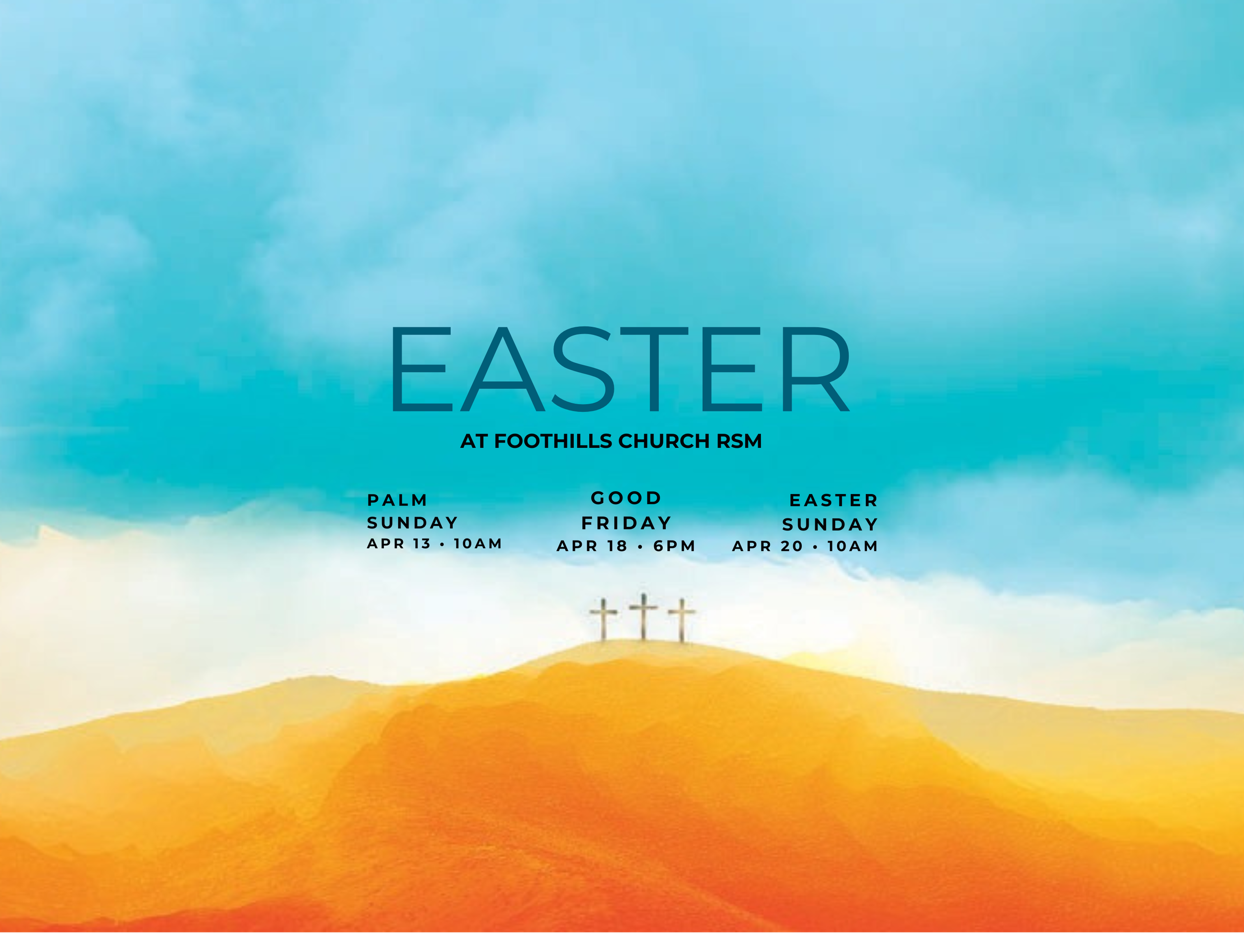 If you have any questions before attending, feel free to reach out to us at welcom@foothillsRSM.com. We look forward to getting to know you!